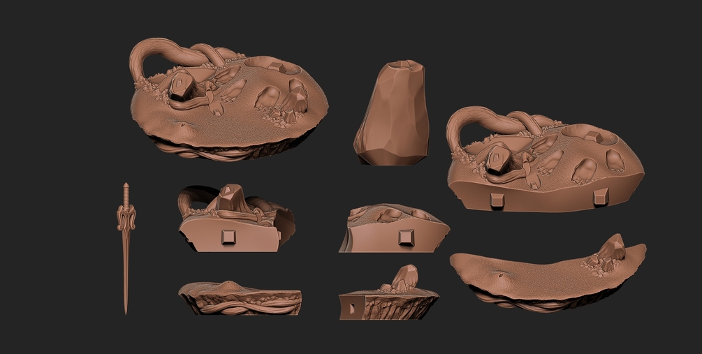 The base comes sliced into parts to make easier its printing and painting.