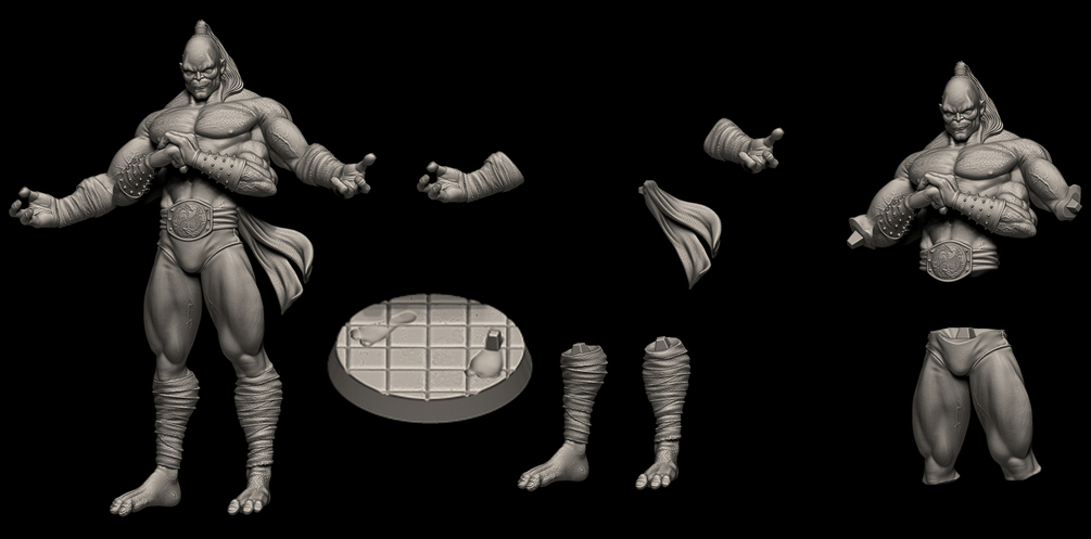 Hi! This is my Shao Kahn and Goro from Mortal Kombat fan art! this was sculpted using ZBrush, and it is fully detailed. The digital sculpture (watermarked STL) is ready to print. It includes the model sliced and perfectly keyed for easy printing and painting. It also includes a full-body files of each character (without the base)! The base comes in a one-piece version and is also sliced; also includes STANDALONE bases in case you dont want to print the whole diorama. This model is 1:8 scale and stands 10.2 inches (26 cm) tall.